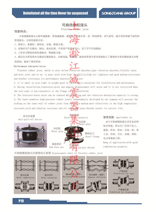 使用范圍:由于橡膠接頭的.性以及不同材質的原材料的綜合性能,所以它在*內廣泛應用于各種管道設備,比之金屬軟管、波紋補償器更普及。